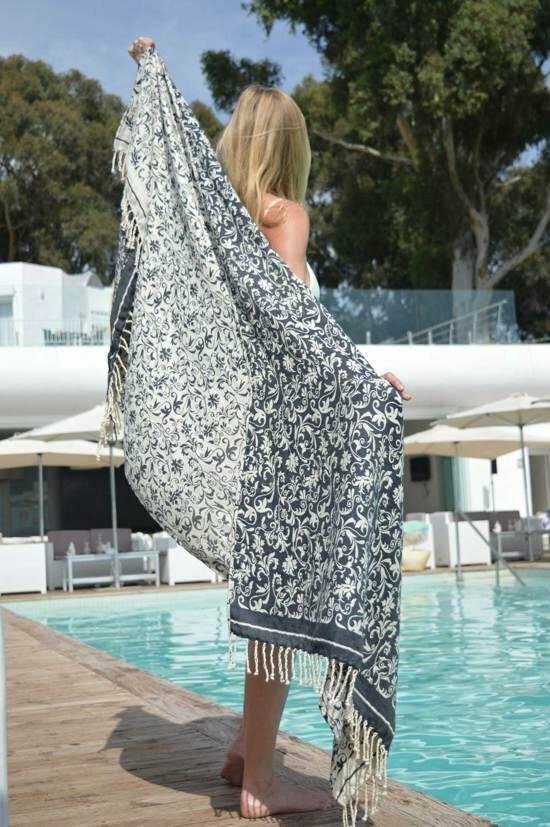 Hamamdoek FLOWER - 100x190 cm - zwart